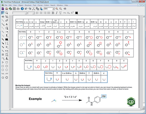 增强热键 - 使用我们的增强型热键直接键入整个反应。通过指向活动网站的指标,您现在可以使用很少的键盘笔划创建分子和反应。