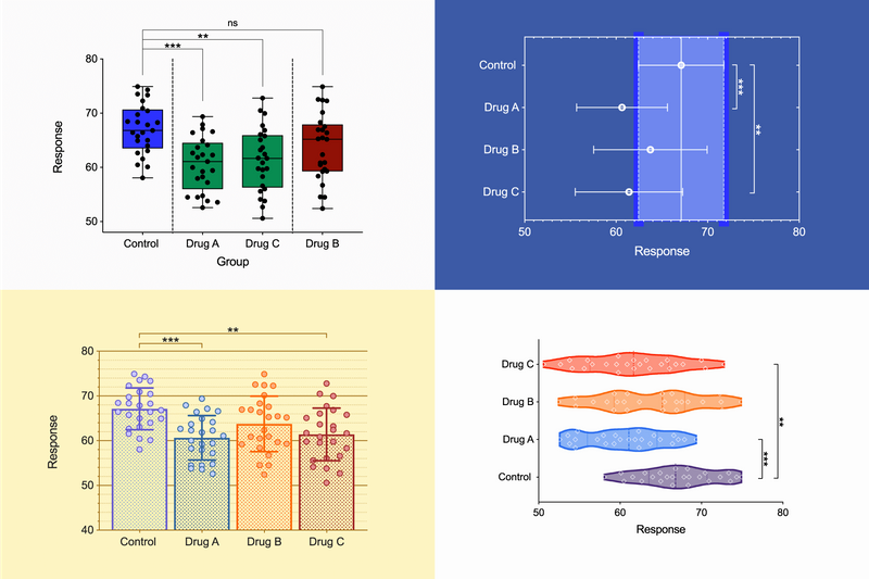 Prism可让您轻松地与同事协作、从同行那里获得反馈,并与全世界分享您的研究成果。Prism可以轻松地将数据转换为简洁优美的、达到出版质量的图表;并提供多种自定义图形(从色调搭配到如何组织数据)的方法;Prism支持导出几乎任何格式的文件,也可直接从Prism发送邮件。